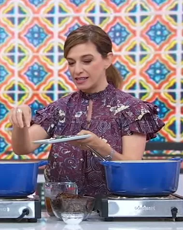 Ulla Johnson Letty Top in Heliotrope worn by Pati Jinich on Good Morning America