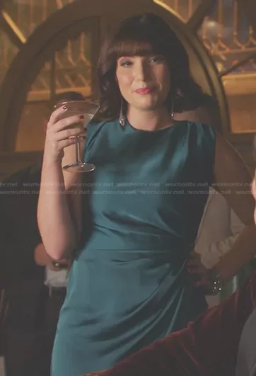 Julie Rosen (played by Gilli Messer) on 9-1-1 on Fox was spotted wearing this green satin draped dress on 9-1-1 on episode 'Mixed Feelings' (6x13) in Apr 2023. 's Dress is the Draped Satin Effect Dress in Duck Green by Zara.
