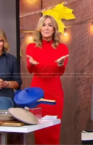Lara Spencer on Good Morning America on ABC was spotted wearing this red gathered waist dress on Good Morning America on Nov 25 2025's episode. Lara's Dress is the Kara Dress by JLux.