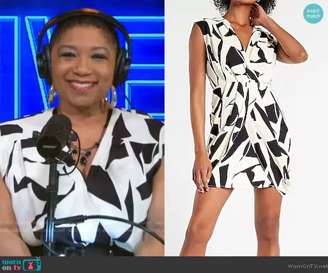 Deja Vu on Live with Kelly and Mark on Disney ABC Home Entertainment was spotted wearing this white floral print mini dress on Live with Kelly and Ryan on Jun 04 2024's episode. Deja Vu's Dress is the Abstract Print Draped Mini Sheath Dress by Express.