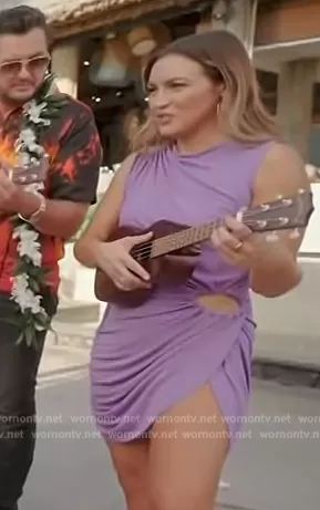 Emily Orozco on Access Hollywood on NBC was spotted wearing this lavender cutout mini dress on Access Hollywood on Apr 12 2023's episode. Emily's Dress is the Cutout ruched stretch-jersey mini dress by Monse.