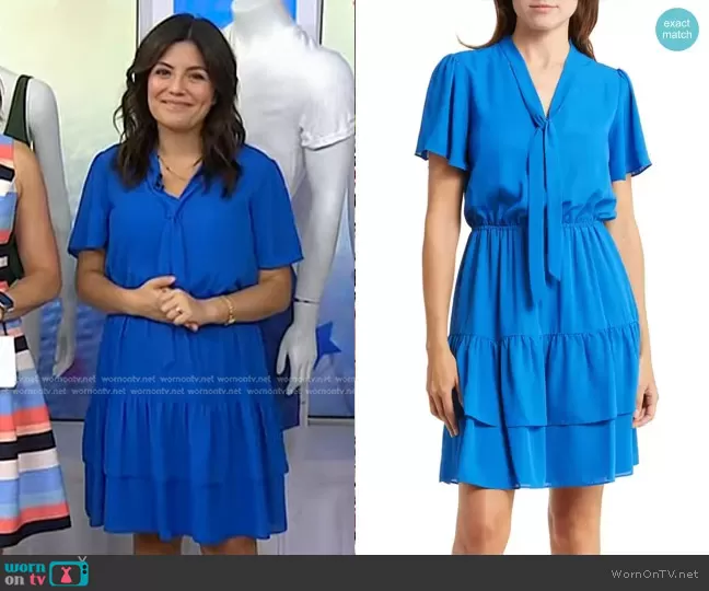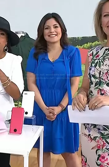 Nanette Lepore Short Sleeve Tie Midi Pleated Dress in Cobalt worn by Adrianna Barrionuevo Brach on Today