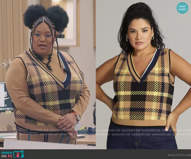 Top: Hadley Plaid V-Neck Cropped Sweater Vest by Gabrielle Union x Fashion to Figure