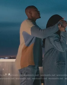 (played by Justin Cornwell) on Bel-Air on Peacock was spotted wearing this blue colorblock sweater on Bel-Air on episode 'Pursuit of Happiness' (2x08) in Apr 2023. 's Sweater is the Colour-Block Knit Jumper by Diesel.