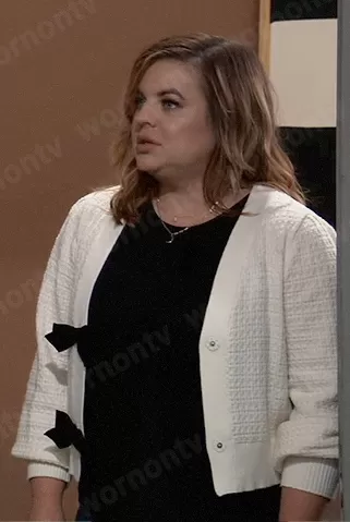 On "General Hospital," Maxie turned heads and warmed hearts in her charming ivory cardigan, proving once again that elegance doesn't have to come with an exorbitant price tag. Priced at just $98 from Express, the cardigan is a testament to accessible style, combining the cozy allure of a textured knit with the whimsical sophistication of cute black bows adorning the buttons. The contrast between the cardigan's soft ivory hue and the bold black bows captures a delightful balance, making it a versatile piece that's as ready for a casual day out as it is for moments under the Port Charles spotlight. This affordable find doesn't skimp on quality or fashion-forward design, offering 'General Hospital' fans the opportunity to infuse their wardrobes with a bit of Maxie's unmistakable style without breaking the bank. The cardigan's blend of comfort, affordability, and chic design encapsulates why viewers look to characters like Maxie for not just compelling storytelling, but also fashion inspiration.