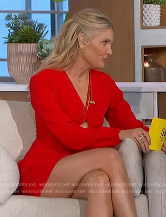Amanda Kloots on The Talk on CBS was spotted wearing this red cutout detail dress on The Talk on Apr 16 2023's episode. Amanda's Dress is the Leslie Dress by A.L.C..