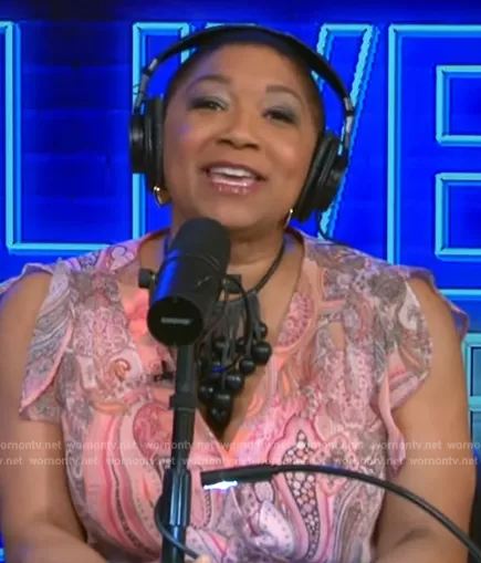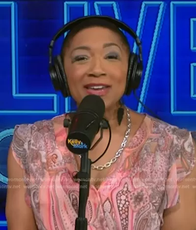 Deja Vu on Live with Kelly and Mark on Disney ABC Home Entertainment was spotted wearing this pink paisley print dress on Live with Kelly and Mark on Aug 08 2024's episode. Deja Vu's Dress is the Jaipur Paisley Dress by Tommy Hilfiger.