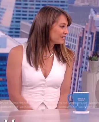 on The View on ABC was spotted wearing this white button down vest on The View on Apr 18 2023's episode. 's Top is the The Favorite Vest by Favorite Daughter.