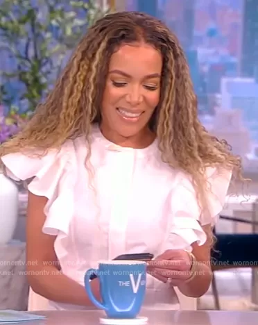 Sunny Hostin on The View on ABC was spotted wearing this white flutter sleeve dress on The View on Apr 18 2023's episode. Sunny's Dress is the Ruffle Detail Cotton Poplin Dress by Chloe.