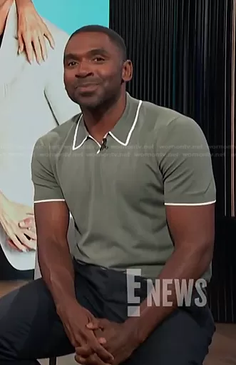 Justin Sylvester on E! News on E! was spotted wearing this green contrast trim polo shirt on E! News on Apr 18 2023's episode. Justin's Shirt is the Stortfo Open Collar Polo Shirt by Ted Baker.