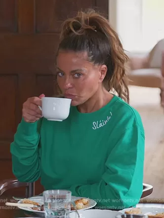 Dolores Catania on The Real Housewives of New Jersey on Bravo was spotted wearing this green sweatshirt on The Real Housewives of New Jersey on episode 'I Smell a Rat' (13x11) in Apr 2023. Dolores's Sweater is the Slainte Sweatshirt by Phoenix Boutique.
