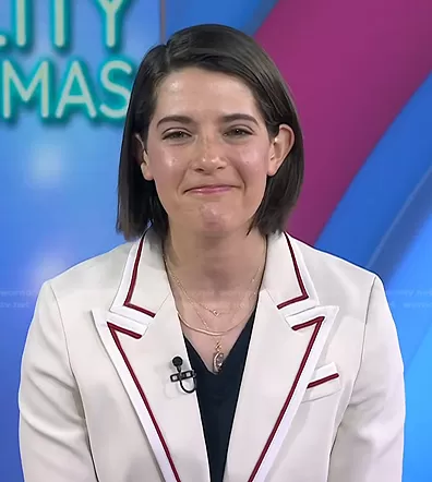 on Today on NBC was spotted wearing this ivory contrast trim blazer on Today on Apr 20 2023's episode. 's Jacket is the Lined Blazer by Gucci.