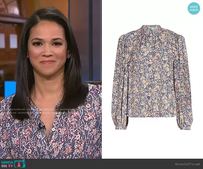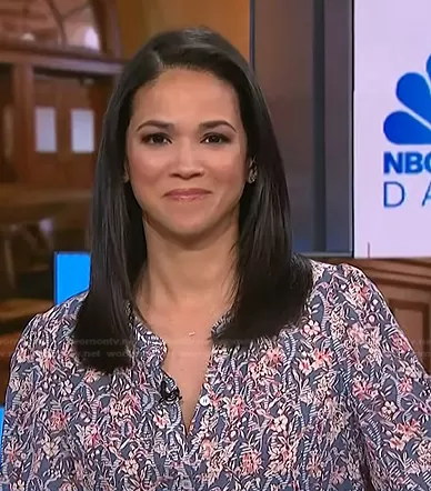 on NBC News Daily on NBC was spotted wearing this blue floral blouse on NBC News Daily on Apr 20 2023's episode. 's Top is the Ashlynn Printed Top by Veronica Beard.