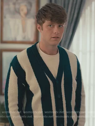 (played by Tyler Barnhardt) on Bel-Air on Peacock was spotted wearing this stripe cardigan on Bel-Air on episode 'Just Like Old Times' (2x09) in Apr 2023. 's Sweater is the Vertical Striped Cardigan by Zara.