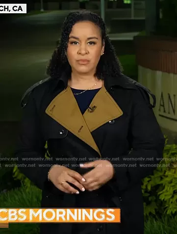 on CBS Mornings on CBS was spotted wearing this two-tone trench coat on CBS Mornings on Apr 21 2023's episode. 's Coat is the Contrast Twill Trench by Banana Republic .