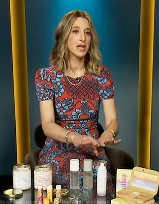on Access Hollywood on NBC was spotted wearing this red floral print dress on Access Hollywood on Apr 21 2023's episode. 's Dress is the Lulani Midi Dress by Rhode.