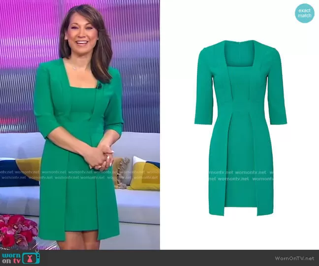 Ginger Zee on Good Morning America on ABC was spotted wearing this green dress on Good Morning America on Apr 24 2023's episode. Ginger's Dress is the Luka Dress by Black Halo.