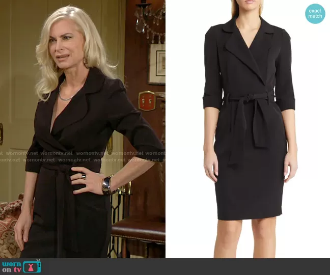 Ashley Abbott (played by Eileen Davidson) on The Young and the Restless on CBS was spotted wearing this black wrap dress on The Young and the Restless on Apr 24 2023's episode. Ashley's Dress is the Lucinda Dress by Black Halo .