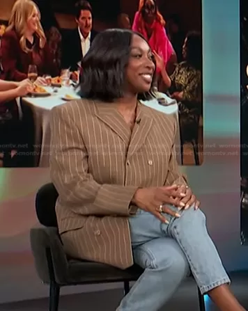 Filippa K Striped Double-Breasted Blazer worn by Ego Nwodim on Access Hollywood