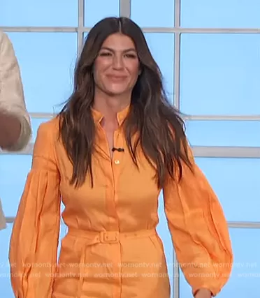 on The Talk on CBS was spotted wearing this orange belted shirtdress on The Talk on Apr 25 2023's episode. 's Dress is the Lydia Dress by Gabriela Hearst.