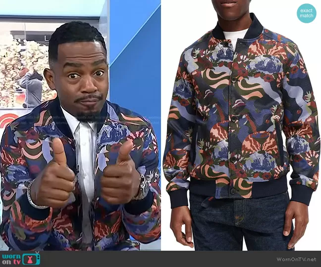 on Today on NBC was spotted wearing this printed bomber jacket on Today on Apr 25 2023's episode. 's Jacket is the Jacquard Bomber Jacket by Scotch & Soda.