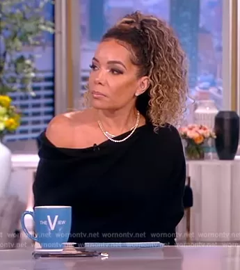 Sunny Hostin on The View on ABC was spotted wearing this black one off shoulder top on The View on Apr 26 2023's episode.