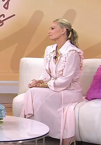 on Today on NBC was spotted wearing this pink ruffle midi dress on Today on Apr 26 2023's episode. 's Dress is the Crepe De Chine Midi-Dress by Chloe.