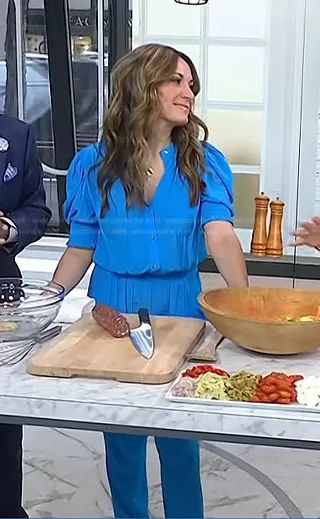 on Today on NBC was spotted wearing this blue jumpsuit on Today on Apr 26 2023's episode. 's Jumpsuit is the Tracey Puff Sleeve Jumpsuit by Ramy Brook.