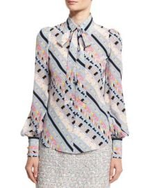 Marc Jacobs Printed Tie-Neck Bishop-Sleeve Blouse worn by Lexi (Lauren Ash) on Not Dead Yet