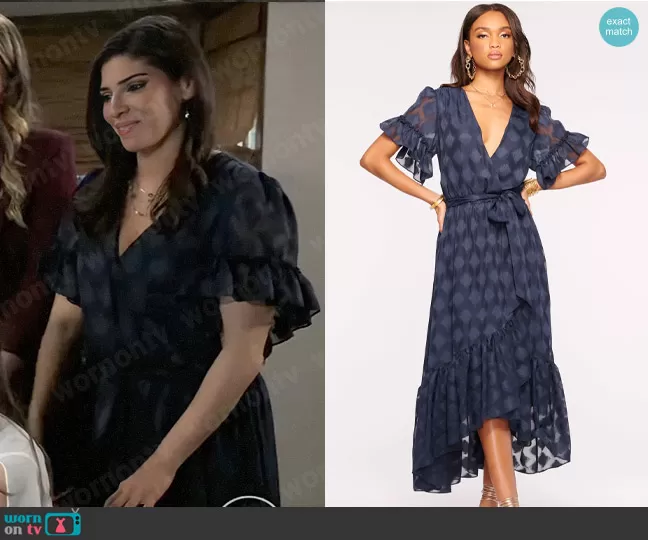 Brook Lynn Quartermaine (played by Amanda Setton) on General Hospital on ABC was spotted wearing this navy wrap dress on General Hospital on Apr 27 2023's episode. Brook Lynn's Dress is the Asya Dress by Ramy Brook .