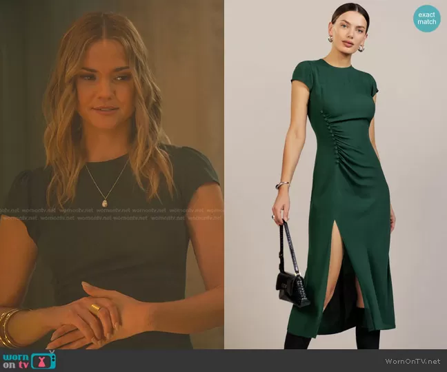 Callie Foster (played by Maia Mitchell) on Good Trouble on Freeform was spotted wearing this green button detail dress on Good Trouble on episode 'Turkey for Me, Turkey for You' (5x07) in Apr 2023. Callie's Dress is the Frasier Dress in Forest by Reformation.