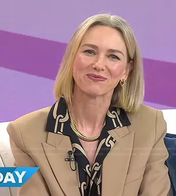 on Today on NBC was spotted wearing this black chain print shirt on Today on Apr 28 2023's episode. 's Top is the Juste Silk Pajama Shirt by Nili Lotan.