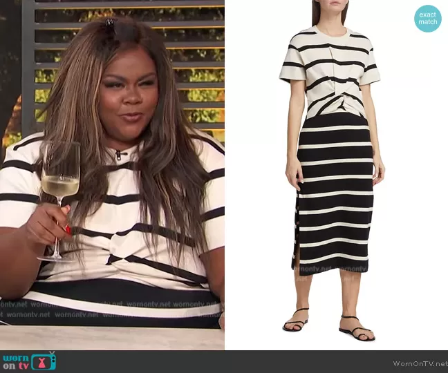 Dress: Willow Striped Twisted-Front Midi Dress by Tanya Taylor