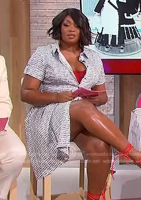 Karl Lagerfeld Paris Geometric Print Belted Shirtdress worn by Liris Cross on Sherri