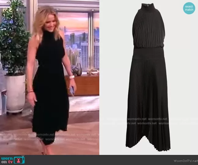 Sara Haines on The View on ABC was spotted wearing this black pleated sleeveless dress on The View on Jul 19 2023's episode. Sara's Dress is the Renzo Sleeveless Dress by A.L.C..