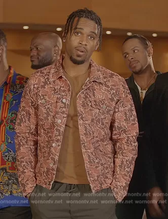 (played by ) on All American on CWTV was spotted wearing this Red camo print denim jacket on All American on episode 'This Is How We Do It' (5x18) in May 2023. 's Jacket is the Winston Denim Jacket by Embellish.