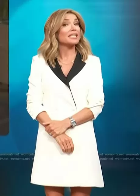 Kit Hoover on Access Hollywood on NBC was spotted wearing this white double breasted blazer dress on Access Hollywood on Jan 12 2026's episode. Kit's Dress is the Kyrie Tuxedo Dress by Alice + Olivia.