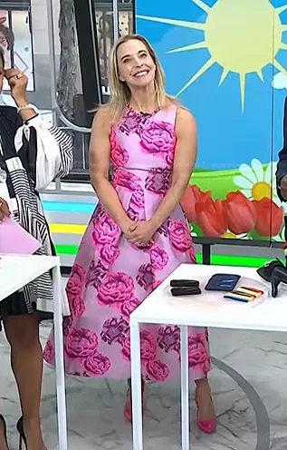 on Today on NBC was spotted wearing this pink floral dress on Today on May 03 2023's episode. 's Dress is the Cherra Floral Midi-Dress by Alice + Olivia.