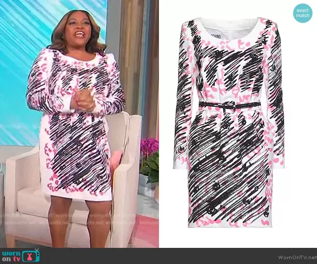 Sherri Shepherd on Sherri on FOX was spotted wearing this abstract print mini dress on Sherri on May 03 2023's episode. Sherri's Dress is the Elegant Dress by Moschino.