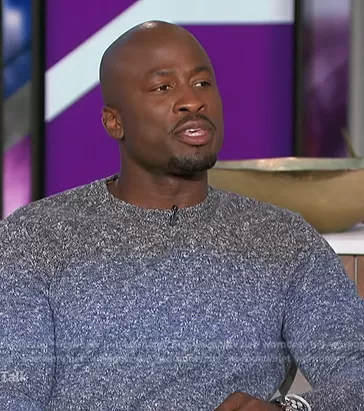 Akbar Gbajabiamila on The Talk on CBS was spotted wearing this blue space dye sweater on The Talk on May 03 2023's episode. Akbar's Sweater is the Striped melange sweater by Scotch and Soda.