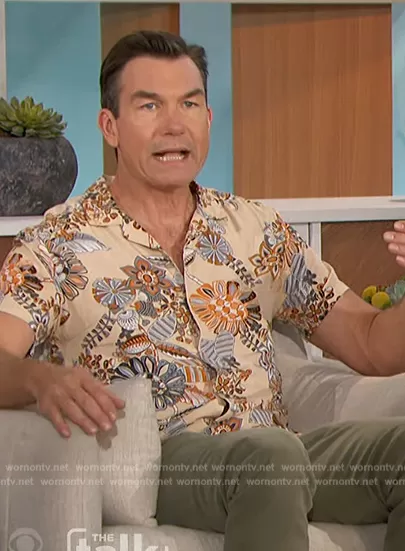 Jerry O'Connell on The Talk on CBS was spotted wearing this beige floral print shirt on The Talk on May 03 2023's episode. Jerry's Shirt is the Revere Shirt in neutral eastern paisley floral by ASOS.