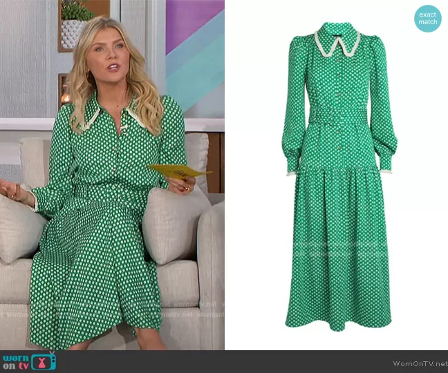 Amanda Kloots on The Talk on CBS was spotted wearing this green floral print belted dress on The Talk on May 03 2023's episode. Amanda's Dress is the Floral Belted Maxi Dress by Me+Em.