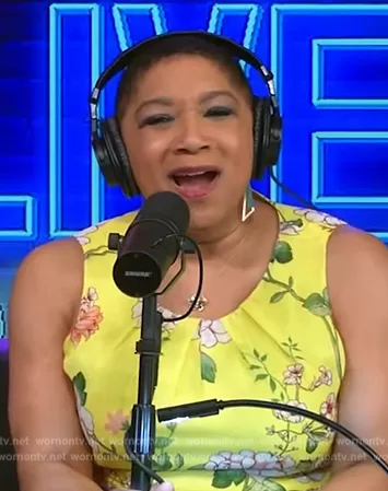 Deja Vu on Live with Kelly and Mark on Disney ABC Home Entertainment was spotted wearing this yellow floral print dress on Live with Kelly and Mark on May 05 2023's episode. Deja Vu's Dress is the Floral-Print Handkerchief-Hem Dress by Jessica Howard.