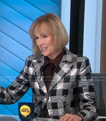 Giorgio Armani Bold-Checked Metallic Jacket worn by Elizabeth Jean Carroll on Good Morning America