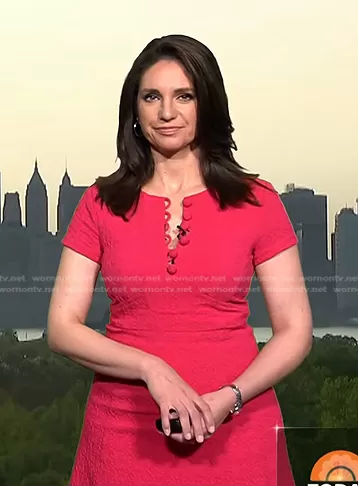 Maria Larosa on Today on NBC was spotted wearing this pink button detail dress on Today on May 11 2023's episode. Maria L's Dress is the Embossed Fit & Flare Dress by Nanette Lepore.