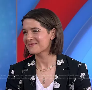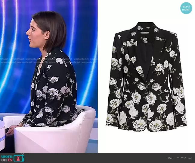 on Today on NBC was spotted wearing this black floral blazer on Today on May 11 2023's episode. 's Jacket is the Macey Fitted Floral Blazer in Spring Shower Black by Alice + Olivia.