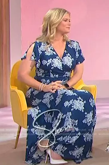 on Sherri on FOX was spotted wearing this blue floral print dress on Sherri on May 12 2023's episode. 's Dress is the Heart of Marigold Navy Blue Floral Print Wrap Maxi Dress by Lulus.