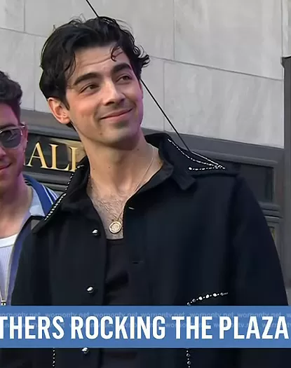 Wales Bonner Delta detachable-collar studded wool jacket worn by Joe Jonas on Today