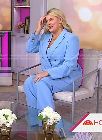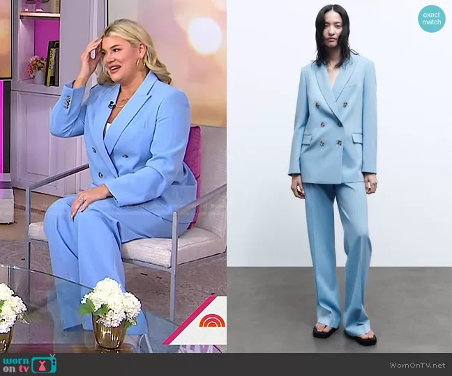 on Today on NBC was spotted wearing this blue double breasted blazer and pants on Today on Feb 24 2025's episode. 's Jacket is the Tailored Double Breasted Blazer in Sky Blue by Zara . 's Pants is the High Waist Pants in Sky Blue by Zara.