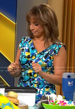 Michelle Miller on CBS Mornings on CBS was spotted wearing this blue printed dress on CBS Mornings on May 14 2023's episode. Michelle's Dress is the Abstract Print Dress by Adrianna Papell.